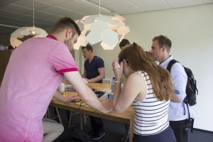 We kijken terug op een zeer geslaagde bijeenkomst, ondanks de warme dag was er een grote opkomst van geïnteresseerden. Het blijkt dus dat het thema de gezonde werkplek echt leeft bij organisaties. Hoewel we nog in de beginfase van het project zitten, zijn we trots op alles wat we konden laten zien gedurende de opening. Het Living Lab stond vol met activerend meubilair, studenten konden hun onderzoek presenteren, er werd gemediteerd met wearables, en ondertussen kon live worden bekeken hoe de omgevingscondities (CO2, temperatuur, en luchtvochtigheid) van het Living Lab waren.
