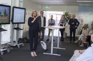 17 mei jongstleden is het Living Lab feestelijk geopend. Alle bezoekers verzamelden zich om 15.30 uur in de grote ruimte van Kenniscentrum NoorderRuimte van de Hanzehogeschool Groningen, voor de opening door Dorothea van der Meulen leading dean van het kenniscentrum, een presentatie van Marieke Meyer-Slettenaar (specialist preventieve interventies bij Menzis), en een toelichting op het project door Jan Gerard Hoendervanger, projectleider van de Innovatiewerkplaats Healthy Workplace. Vanaf 16.15 uur hebben alle bezoekers van het Living Lab de mogelijkheid gehad om het Living Lab te verkennen. In elke hoek van de werkomgeving was wat te doen en te ontdekken.